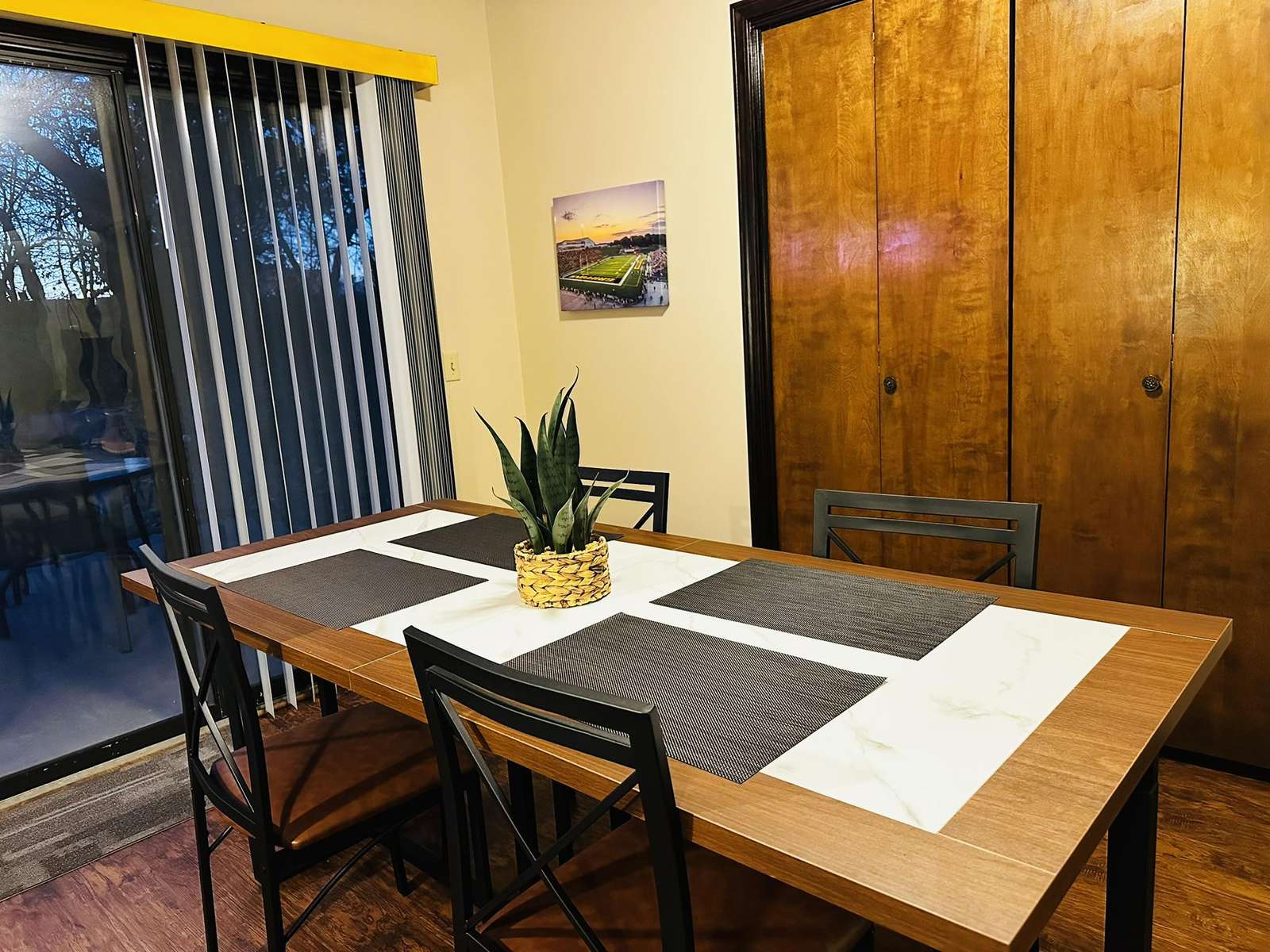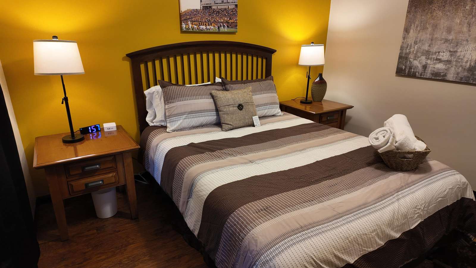 This charming 2-bedroom home is beautifully decorated in MWSU colors and styles... perfect for MWSU families, alumni, fans, etc! It offers many great amenities including stylish furnishings and appliances (stove, dishwasher, refrigerator, microwave, washer/dryer, etc). It's located just off the Belt Highway near I-29 and 36 Highway. You’ll love my place because of the coziness, the cleanliness, the amenities, the quiet street, off-street parking, etc.